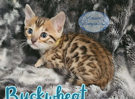 Buckwheat is the class clown—always bouncing, chasing, and causing adorable mischief. He has a curious, bouncy energy and an eagerness to investigate anything new, from jingling balls to the sound of your footsteps. His confidence and social nature make him a natural at making friends, whether feline, canine, or human. Buckwheat loves to interact and would flourish in a home where playtime is part of the daily routine. He’s outgoing, funny, and ready to fill your home with laughter