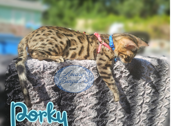 Porky is a whirlwind of fun with a flair for the dramatic—this boy will turn any toy into a circus act. He’s endlessly energetic, known for his playful backflips and sudden zoomies that leave everyone laughing. Porky thrives on interactive play and loves having an audience for his silliness. When he’s finally tired out, you’ll find him curled up near you, purring away like a motor. He’d do best in an active home where he can stretch those long legs and show off his goofy side.
